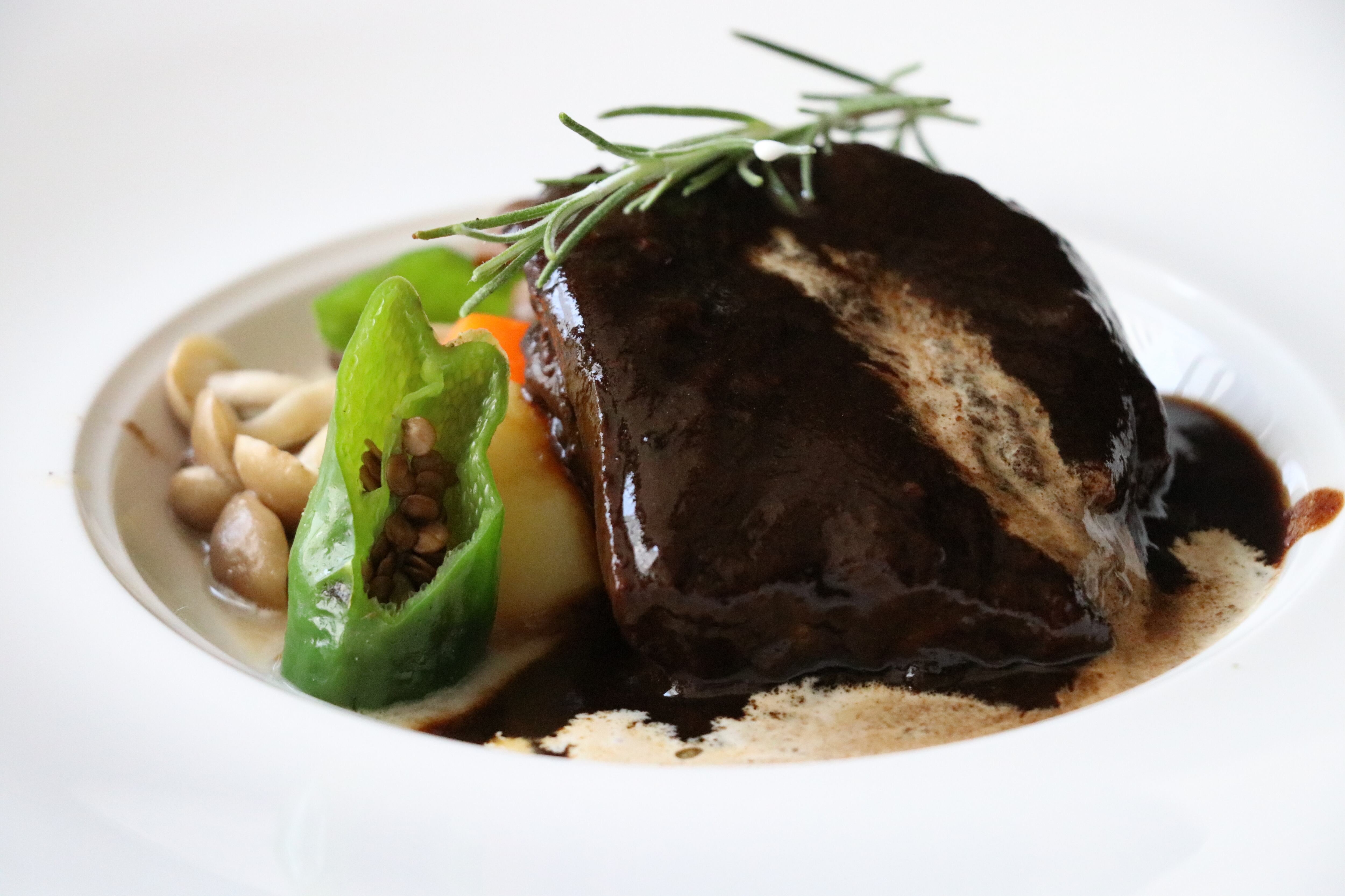 お口に入れた瞬間、赤ワインの香りと、ビター&スイーなデミグラスソースの味わいと、近江牛独特なお肉の旨みと香りが鼻から抜け、その後お口いっぱいに旨み爆弾が爆発する事でしょう。