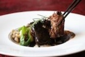 厳選された近江牛「澤井姫和牛」のほほ肉を赤ワインを贅沢にも4L以上又、当店自慢の15日以上かけて丁寧に仕上げたうまみを凝縮させたデミグラスソースで、じっくり72時間以上かけて煮込み仕上げました。